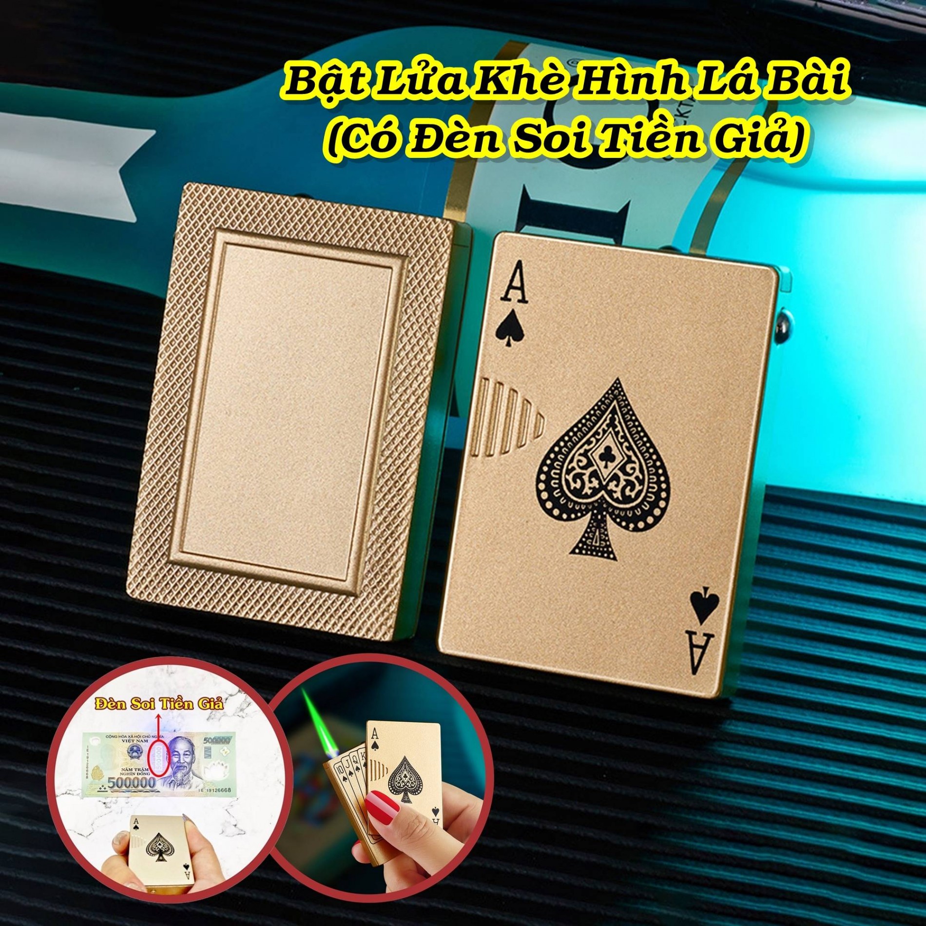 Đừng bỏ lỡ cơ hội sở hữu một món phụ kiện độc đáo và đầy công năng như chiếc bật lửa hình lá bài có đèn soi tiền giả xài gas màu vàng. Hãy nhanh tay đặt hàng ngay hôm nay để nhận được những ưu đãi hấp dẫn. Sở hữu ngay bật lửa lá bài vàng để thể hiện đẳng cấp và sự tinh tế của bạn!
