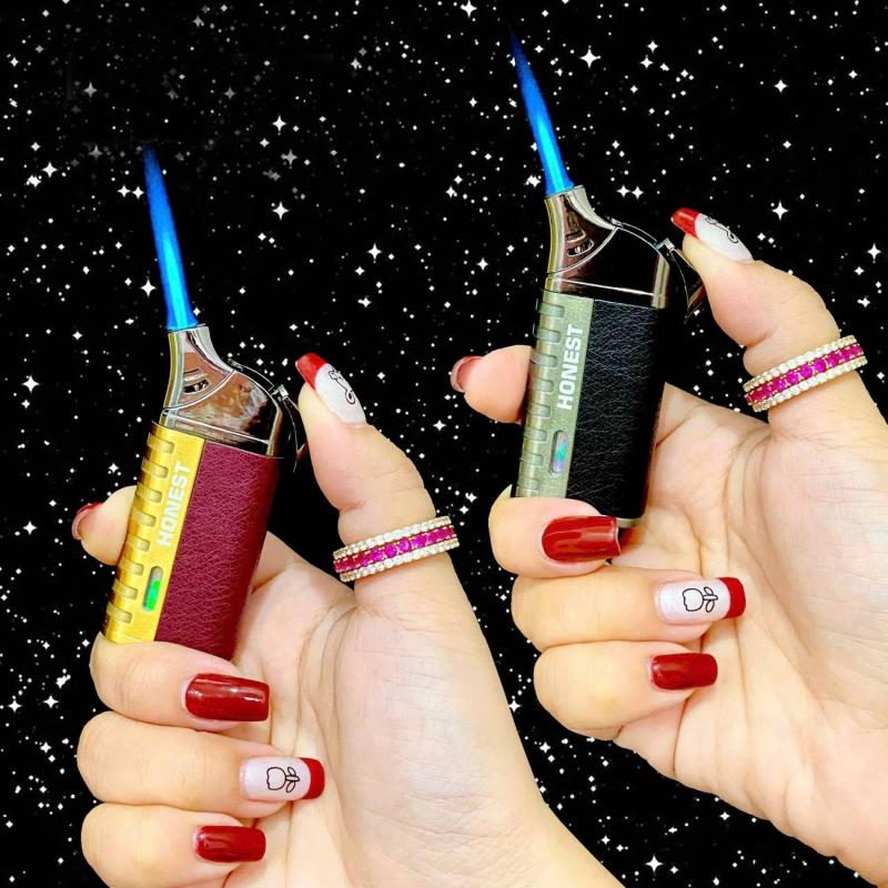 Bật lửa hút tẩu Honest 620 bọc da có hộp - xài gas lửa khò