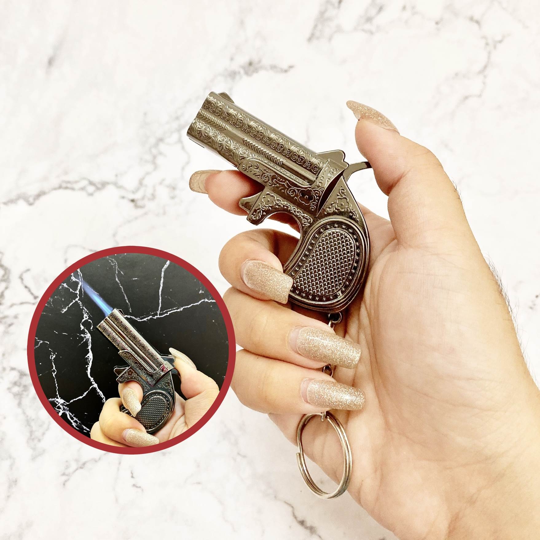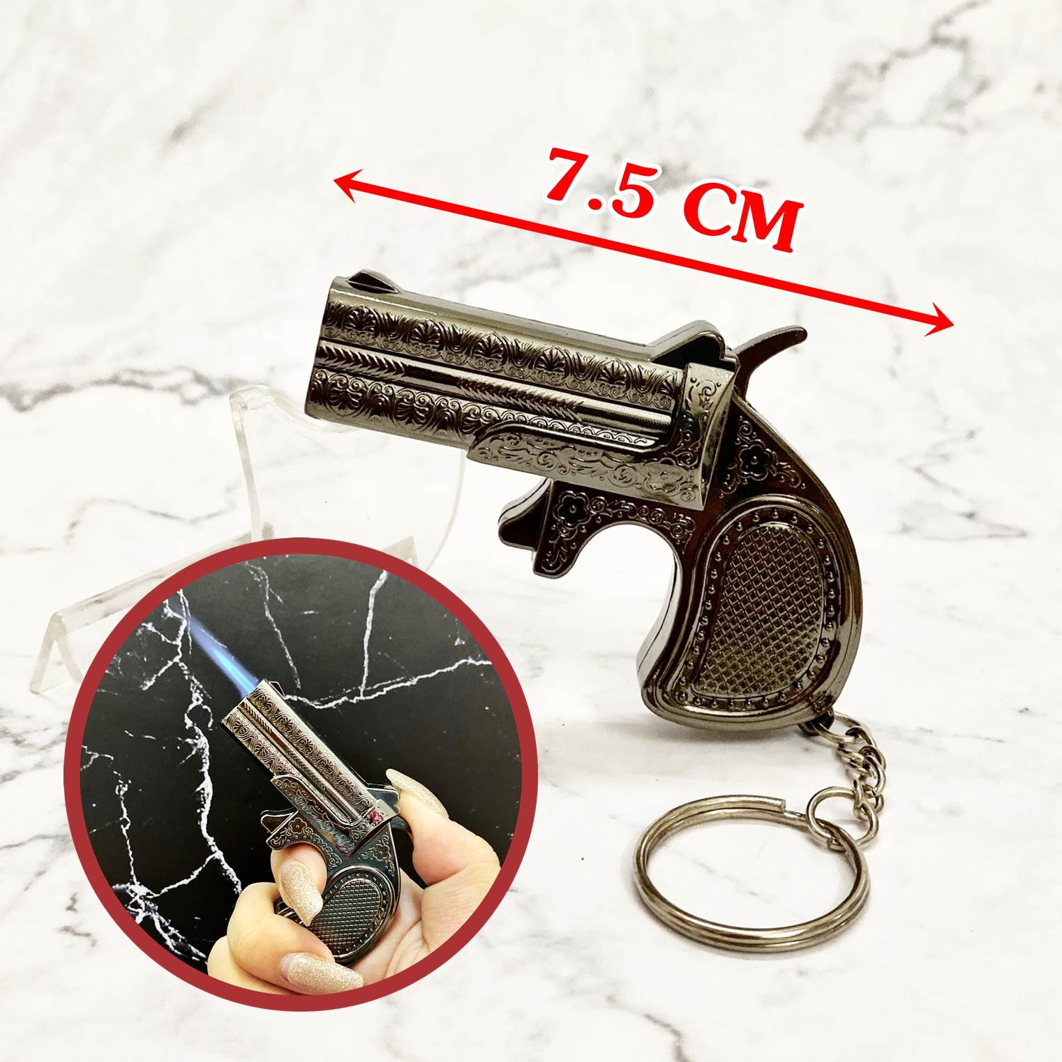 Bật lửa khè hình súng hoa văn đen - móc khóa size: 7.5cm - xài gas