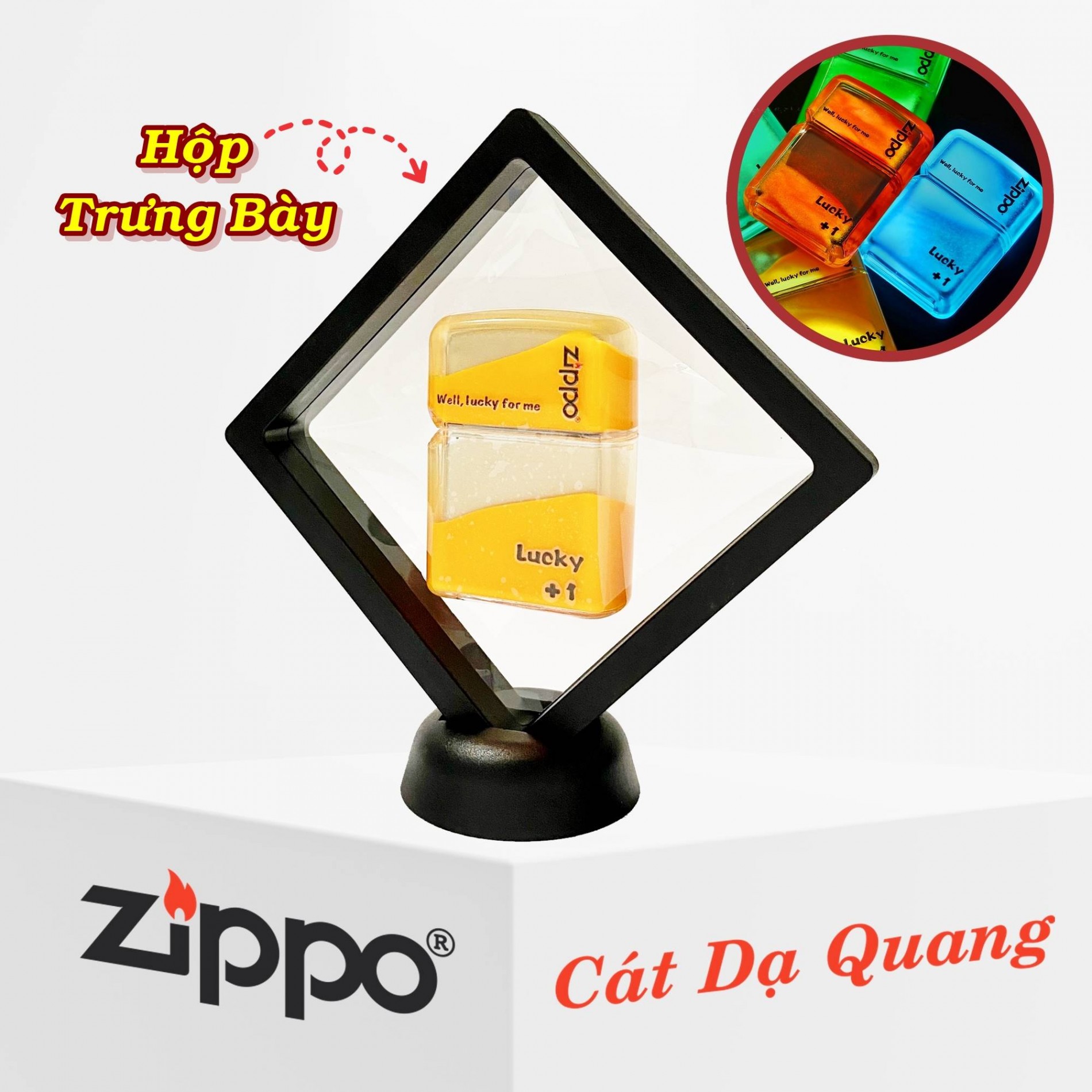 Bật lửa Zippo cát dạ quang màu cam kèm hộp trưng bày xài xăng